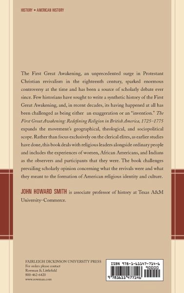 The First Great Awakening is a major revisionist analysis of a significant turning point in early American history. It offers a new definition for what constitutes a religious awakening and incorporates facets of colonial society previously downplayed as key elements of the First Great Awakening.