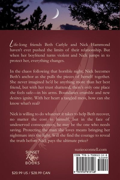 Life-long friends Beth Carlyle and Nick Hammond haven’t ever pushed the limits of their relationship. But when her boyfriend turns violent and Nick jumps in to protect her, everything changes. In the chaos following that horrible night, Nick becomes Beth’s anchor as she pulls the pieces of herself together. She never imagined he’d be anything more than her best friend, but with her trust shattered, there’s only one place she feels safe—in his arms. Boundaries crumble and new desires ignite. With her heart a tangled mess, how can she know what’s real? Nick is willing to do whatever it takes to help Beth recover, no matter the cost to himself, but in the face of undeserved consequences, he may be the one who needs saving. Protecting the man she loves means bringing her nightmare into the light. Will she find the courage to reveal the truth before Nick pays the ultimate price?