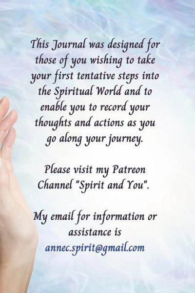 This is a Journal for those taking their first tentative steps on their Spiritual Journey in their life. You can write thoughts, feelings or or draw images which you receive. You can also record any questions you want answered and the replies you receive. Look out for my other Books on Amazon and other publishing houses. Together with children's books being published under BA Publications. Patreon Channel "Spirit and you". If you wish any further information please email acoombes.spirit.gmail.co.uk.