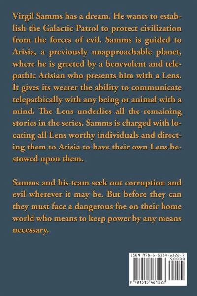 Virgil Samms has a dream. He wants to establish the Galactic Patrol to protect civilization from the forces of evil. Samms is guided to Arisia, a previously unapproachable planet, where he is greeted by a benevolent and telepathic Arisian who presents him with a Lens. It gives its wearer the ability to communicate telepathically with any being or animal with a mind. The Lens underlies all the remaining stories in the series. Samms is charged with locating all Lens worthy individuals and directing them to Arisia to have their own Lens bestowed upon them. Samms and his team seek out corruption and evil wherever it may be. But before they can they must face a dangerous foe on their home world who means to keep power by any means necessary.