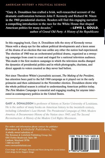 Donaldson ... gathers everything about that pivotal election season in a fast-paced, comprehensive tale... [He] is particularly good at analyzing the divisions within the two major parties, especially those of the Republicans, and in assessing the role of religion in the campaign. One comes away with a heightened appreciation of Nixon's clarity of understanding, Kennedy's distinctive energy and the origins of the right's grievances, which eventually led to its takeover of the Republican Party. Publishers Weekly The book is a pleasant read that weaves interesting anecdotes and insights to provide a lively account of party politics in the 1950s and the campaign and election of 1960... Recommended. CHOICE Donaldson's brevity and thematic unity make this book an excellent choice for undergraduates... Donaldson's ability to tell a good story combines nicely with a thorough survey of scholarly works and manuscript collections. Journal of American History In this lively and informative book Gary A. Donaldson provides readers with a number of important insights into American politics. The Journal Of Southern History The First Modern Campaign promises to be a more evenhanded treatment of the candidates, and it delivers on this promise. Donaldson has done extensive archival research and brings his revealing findings to bear at numerous points in his narrative. The strength of the book is in its fast-paced yet thorough account of the Kennedy-Nixon combat. Donaldson does an equally good job sketching the political background for the 1960 election and describing the pivotal events of the campaign. The Historian Gary A. Donaldson has crafted a brisk, well-researched account of the dramatic confrontation between John F. Kennedy and Richard M. Nixon in the 1960 presidential election. Readers will find this engaging narrative a compelling introduction to the race for the White House that shaped American politics for many decades. -- Lewis L. Gould, author of Grand Old Party: A History of the Republicans Theodore H. White's The Making of the President 1960 established the popular genre of insider campaign narratives and remains the most famous book of all campaign books. Prospective readers of The First Modern Campaign will want to know what is different and new about this new account of the 1960 election. Gary A. Donaldson tackles his Theodore White problem in a preface and makes an important claim: for all of its virtues, White's version of the 1960 election was marred by his romanticized portrait of John F. Kennedy. The First Modern Campaign promises to be a more evenhanded treatment of the candidates, and it delivers on this promise. The Historian