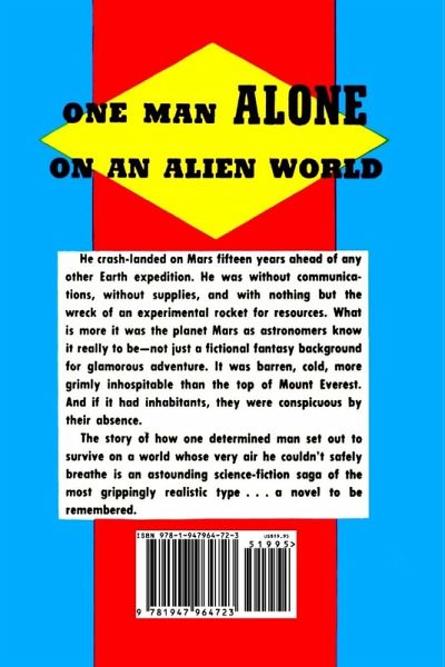 He crash-landed on Mars fifteen years ahead of any other Earth expedition. He was without communications, without supplies, and with nothing but the wreck of an experimental rocket for resources. What is more it was the planet Mars as astronomers know it really to be--not just a fictional fantasy background for glamorous adventure. It was barren, cold, more grimly inhospitable than the top of Mount Everest. And if it had inhabitants, they were conspicuous by their abnsence.