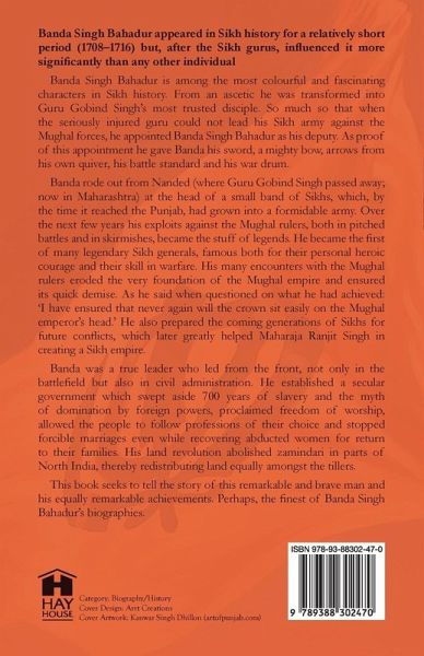 Banda Singh Bahadur appeared in Sikh history for a relatively short period (1708-1716) but, after the Sikh gurus, influenced it more significantly than any other individual Banda Singh Bahadur is among the most colourful and fascinating characters in Sikh history. From an ascetic he was transformed into Guru Gobind Singh's most trusted disciple. So much so that when the seriously injured guru could not lead his Sikh army against the Mughal forces, he appointed Banda Singh Bahadur as his deputy. As proof of this appointment he gave Banda his sword, a mighty bow, arrows from his own quiver, his battle standard and his war drum. Banda rode out from Nanded (where Guru Gobind Singh passed away; now in Maharashtra) at the head of a small band of Sikhs, which, by the time it reached the Punjab, had grown into a formidable army. Over the next few years his exploits against the Mughal rulers, both in pitched battles and in skirmishes, became the stuff of legends. He became the first of many legendary Sikh generals, famous both for their personal heroic courage and their skill in warfare. His many encounters with the Mughal rulers eroded the very foundation of the Mughal empire and ensured its quick demise. As he said when questioned on what he had achieved: 'I have ensured that never again will the crown sit easily on the Mughal emperor's head.' He also prepared the coming generations of Sikhs for future conflicts, which later greatly helped Maharaja Ranjit Singh in creating a Sikh empire. Banda was a true leader who led from the front, not only in the battlefield but also in civil administration. He established a secular government which swept aside 700 years of slavery and the myth of domination by foreign powers, proclaimed freedom of worship, allowed the people to follow professions of their choice and stopped forcible marriages even while recovering abducted women for return to their families. His land revolution abolished zamindari in parts of North India, thereby redistributing land equally amongst the tillers. This book seeks to tell the story of this remarkable and brave man and his equally remarkable achievements. Perhaps, the finest of Banda Singh Bahadur's biographies.