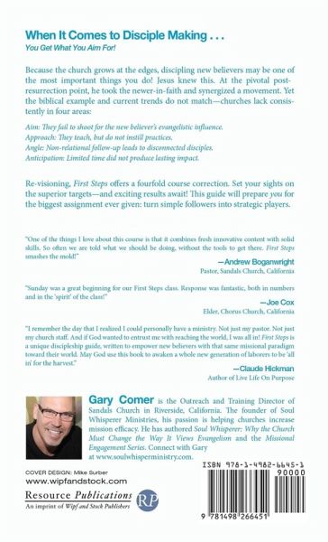 When It Comes to Disciple Making . . . You Get What You Aim For! Because the church grows at the edges, discipling new believers may be one of the most important things you do! Jesus knew this. At the pivotal post-resurrection point, he took the newer-in-faith and synergized a movement. Yet the biblical example and current trends do not match--churches lack consistently in four areas: Aim: They fail to shoot for the new believer's evangelistic influence. Approach: They teach, but do not instill practices. Angle: Non-relational follow-up leads to disconnected disciples. Anticipation: Limited time did not produce lasting impact. Re-visioning, First Steps offers a fourfold course correction. Set your sights on the superior targets--and exciting results await! This guide will prepare you for the biggest assignment ever given: turn simple followers into strategic players.