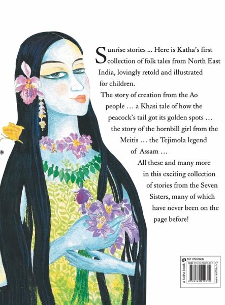 Sunrise stories ... Here is Katha's first collection of folktales from the North East, lovingly retold and illustrated for children. The story of creation from the Ao people, a Khasi tale of how the peacock's tail got its golden spots; the story of the hornbill girl from the Meitis; the Tejimola legend of Assam and many more ...