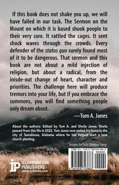 If this book does not shake you up, we will have failed in our task. The Sermon on the Mount on which it is based shook people to their very core. It rattled the cages. It sent shock waves through the crowds. Every defender of the status quo surely found most of it to be dangerous. That sermon and this book are not about a mild injection of religion, but about a radical, from the inisde-out change of heart, character and priorities. The challenge here will produce tremors into your life, but if you embrace the summons, you will find something people only dream about.