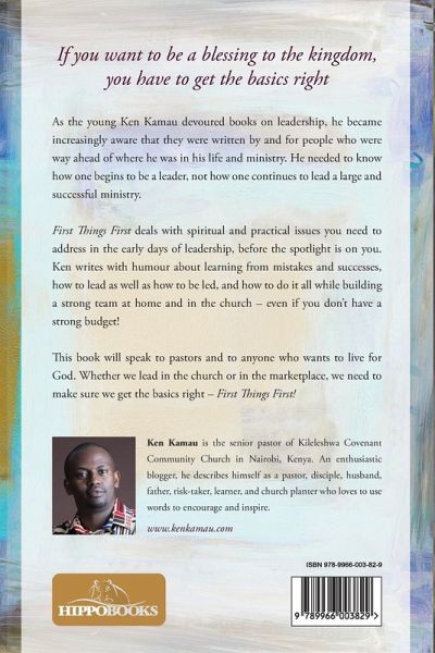 If you want to be a blessing to the kingdom, you have to get the basics right! As the young Ken Kamau devoured books on leadership, he became increasingly aware that they were written by and for people who were way ahead of where he was in his life and ministry. He needed to know how one begins to be a leader, not how one continues to lead a large and successful ministry. First Things First deals with spiritual and practical issues you need to address in the early days of leadership, before the spotlight is on you. Ken writes with humour about learning from mistakes and successes, how to lead as well as how to be led, and how to do it all while building a strong team at home and in the church - even if you don't have a strong budget! This book will speak to pastors and to anyone who wants to live for God. Whether we lead in the church or in the marketplace, we need to make sure we get the basics right - First Things First!