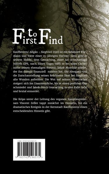 Kaufbeuren/Allgäu - Siegfried Distl ist ein liebender Ehemann und Vater einer 15-jährigen Tochter. Gern geht er seinem Hobby, dem Geocaching, einer Art Schnitzeljagd mittels GPS, nach. Eines Tages trifft er bei einer Cachesuche seinen ehemaligen Freund, Jakob Muschke wieder, der ihn damals finanziell ruiniert hat. Die Arroganz und die Zurschaustellung seines Reichtums lässt bei Siegfried alte Wunden aufreißen. Die Wut auf seinen Widersacher steigert sich ins Unermessliche, bis er einen perfiden Plan schmiedet und Jakob durch Geocaching in eine Falle lockt und brutal ermordet. Die Kripo unter der Leitung des veganen Hauptkommissars Vincent Zeller tappt zunächst im Dunkeln, bis ein dramatisches Ereignis in der Kernstadt Kaufbeurens einen entscheidenden Hinweis gibt.