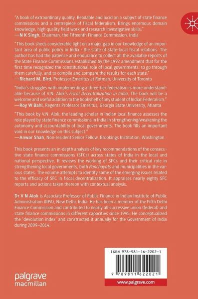 Chapter 1- Introduction.- Chapter 2- Fiscal Decentralization in India: An Overview.- Chapter 3 - Recommendations of SFCs: A Review.- Chapter 4- Impediments in the Functioning of SFCs and Good Practices.- Chapter 5- Conclusion and Recommendations.