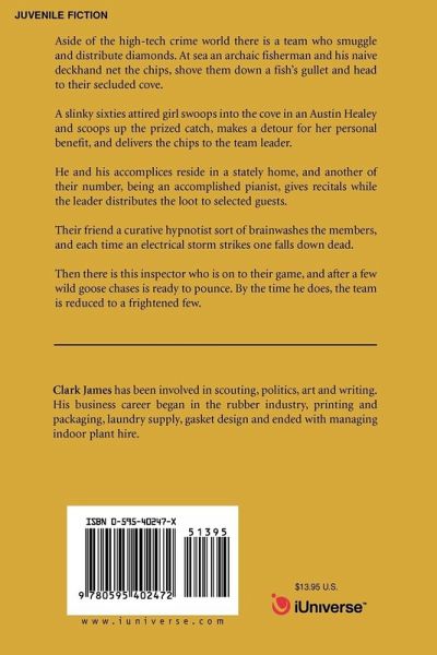 Aside of the high-tech crime world there is a team who smuggle and distribute diamonds. At sea an archaic fisherman and his naive deckhand net the chips, shove them down a fish's gullet and head to their secluded cove. A slinky sixties attired girl swoops into the cove in an Austin Healey and scoops up the prized catch, makes a detour for her personal benefit, and delivers the chips to the team leader. He and his accomplices reside in a stately home, and another of their number, being an accomplished pianist, gives recitals while the leader distributes the loot to selected guests. Their friend a curative hypnotist sort of brainwashes the members, and each time an electrical storm strikes one falls down dead. Then there is this inspector who is on to their game, and after a few wild goose chases is ready to pounce. By the time he does, the team is reduced to a frightened few.
