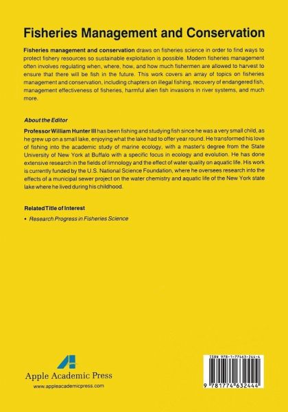 This title includes a number of Open Access chapters. Fisheries management and conservation draws on fisheries science in order to find ways to protect fishery resources so sustainable exploitation is possible. Modern fisheries management often involves regulating when, where, how, and how much fishermen are allowed to harvest to ensure that there will be fish in the future. This work on fisheries management and conservation covers a broad array of chapters on this field of growing importance. It includes chapters on illegal fishing, recovery of endangered fish, effective management of fisheries, fish invasions in river systems, selection of fishing areas, fish invasions, conservation efforts, and much more.