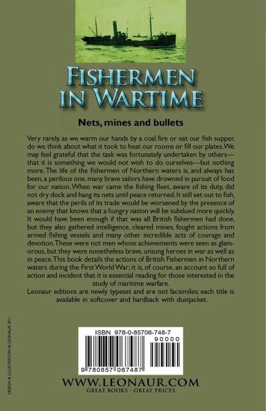 Nets, mines and bullets Very rarely, as we warm our hands by a coal fire or eat our fish supper, do we think about what it took to heat our rooms or fill our plates. We may feel grateful that the task was fortunately undertaken by others-that it is something we would not wish to do ourselves-but nothing more. The life of the fishermen of Northern waters is, and always has been, a perilous one, many brave sailors have drowned in pursuit of food for our nation. When war came the fishing fleet, aware of its duty, did not dry dock and hang its nets until peace returned. It still set out to fish, aware that the perils of its trade would be worsened by the presence of an enemy that knows that a hungry nation will be subdued more quickly. It would have been enough if that was all British fishermen had done, but they also gathered intelligence, cleared mines, fought actions from armed fishing vessels and many other incredible acts of courage and devotion. These were not men whose achievements were seen as glamorous, but they were nonetheless brave, unsung heroes in war as well as in peace. This book details the actions of British Fishermen in Northern waters during the First World War; it is, of course, an account so full of action and incident that it is essential reading for those interested in the study of maritime warfare. Leonaur editions are newly typeset and are not facsimiles; each title is available in softcover and hardback with dustjacket.