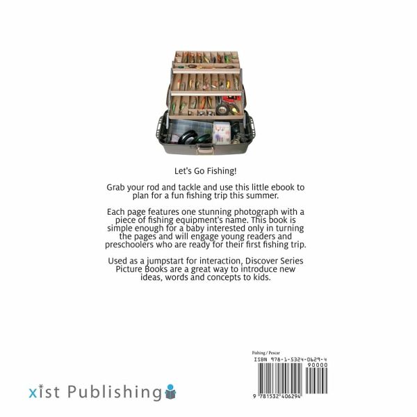 Bilingual Discover Series Books for Babies & Toddlers: Fishing Let's Go Fishing! Grab your rod and tackle and use this little eBook to plan for a fun fishing trip this summer. Each page features one stunning photograph with a piece of fishing equipment's name. This book is simple enough for a baby interested only in turning the pages and will engage young readers and preschoolers who are ready for their first fishing trip. Used as a jumpstart for interaction, Discover Series Picture Books are a great way to introduce new ideas, words, and concepts to kids. In this Xist Kids English Spanish Bilingual Edition, the original English text is paired with the Spanish translation on each page.