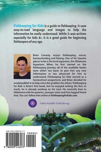 Fishkeeping for Kids is a guide to fishkeeping written especially for kids 8+, but it serves as a good guide for beginning fishkeepers of any age. Written by Brian Conway, this book uses easy-to-read language and images to help the information be easily understood by anyone. This book covers all the steps that a beginner fishkeeper will face, from choosing and maintaining the fish tank to learning about fish and how to take good care of them. There are very few books out there that can help someone who just started fishkeeping, and most of them are either too complex, and complicated to understand, or they weren't detailed enough; Fishkeeping For Kids fills in that gap. "This book is a fabulous resource for the beginning fishkeeper, a must-have for any household! Brian, the author, has been a true pleasure to work with and it's inspiring to see someone his age reach his goals and serve as an example for others his age. We believe we've seen just the tip of the iceberg for where Brian is headed." - Eli Camp, ND, Founder of Vital Health Publishing. Brian Conway has been an avid fishkeeper since he was 9 years old. He was asked to research all the ins and outs of fishkeeping before he got permission to have fish tanks. There was a lot of information to find but he found that existing books were either too complicated or too simple. In 2018, when he was 10, Brian decided to write the book he could not find when he was starting out with his hobby. His book, Fishkeeping For Kids, published in 2022 when Brian was just 13 years old, fills that gap and provides clear and easy-to-understand information with full-color illustrations. After Brian wrote the book he said, "This is the book I wish I'd had to read!" Brian, along with his younger sister, is homeschooled and he has chosen to pursue a profession in marine biology. He and his family have recently set up a small homestead in Cherokee County, Oklahoma, complete with horses, chickens, bees, a pond and fish. He plans to write additional books for fish enthusiasts.