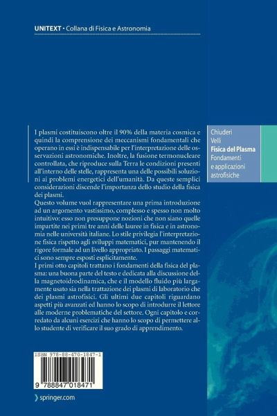 "This short, self-contained book on plasma physics ... is primarily meant for Italian students completing their Laurea. It may be of valuable help to Italian-speaking undergraduates beginning in the field, as a first reading before they tackle more advanced and comprehensive book ... ." (Jeremie Unterberger, zbMATH, Vol. 1277, 2014)
