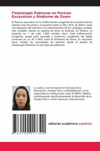 El Pectum excavatum es la malformación congénita de la pared torácica anterior más frecuente y se presenta entre un 90 y 92%. Se define como una depresión del esternón con exteriorización de los cartílagos costales más caudales, dando un aspecto de tórax en embudo. En México, se presenta en 1 de cada 1,000 nacidos vivos. Esta malformación congénita, puede estar asociada a trastornos congénitos del tejido conectivo en un 30 a 40% como el Síndrome de Down. Es necesario hacer visibles las necesidades de atención desde el ámbito de Fisioterapia Pulmonar en este tipo de población.