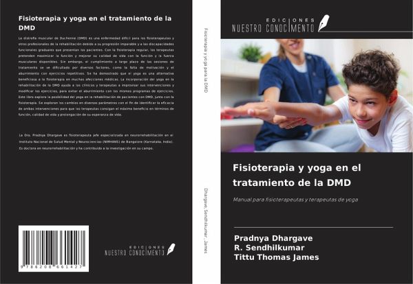 La distrofia muscular de Duchenne (DMD) es una enfermedad difícil para los fisioterapeutas y otros profesionales de la rehabilitación debido a su progresión imparable y a las discapacidades funcionales graduales que presentan los pacientes. Con la fisioterapia regular, los terapeutas pretenden maximizar la función y mejorar su calidad de vida con la función y la fuerza musculares disponibles. Sin embargo, el cumplimiento a largo plazo de las sesiones de tratamiento se ve dificultado por diversos factores, como la falta de motivación y el aburrimiento con ejercicios repetitivos. Se ha demostrado que el yoga es una alternativa beneficiosa a la fisioterapia en muchas afecciones médicas. La incorporación del yoga en la rehabilitación de la DMD ayuda a los clínicos y terapeutas a improvisar sus intervenciones y modificar los ejercicios, para evitar el aburrimiento con los mismos programas de ejercicios. Este libro explora la posibilidad del yoga en la rehabilitación de pacientes con DMD, junto con la fisioterapia. Se exploran los cambios en diversos parámetros con el fin de identificar la eficacia de ambas intervenciones para que los terapeutas consigan el máximo beneficio en términos de función, calidad de vida y prolongación de su esperanza de vida.