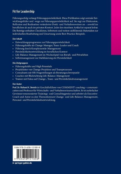 Führungserfolg verlangt Führungspersönlichkeit. Diese Publikation zeigt zentrale Entwicklungsfelder und -wege zur Führungspersönlichkeit auf. Sie regt zur Diskussion, Reflexion und Realisation veränderter Denk- und Verhaltensweisen an - sowohl im beruflichen als auch im privaten Kontext. Jeder der einzelnen Artikel ist separat lesbar. Die Beiträge enthalten Checklisten, Selbsttests und weitere zielführende Materialien zur individuellen Bearbeitung und Umsetzung sowie Best-Practice-Beispiele.