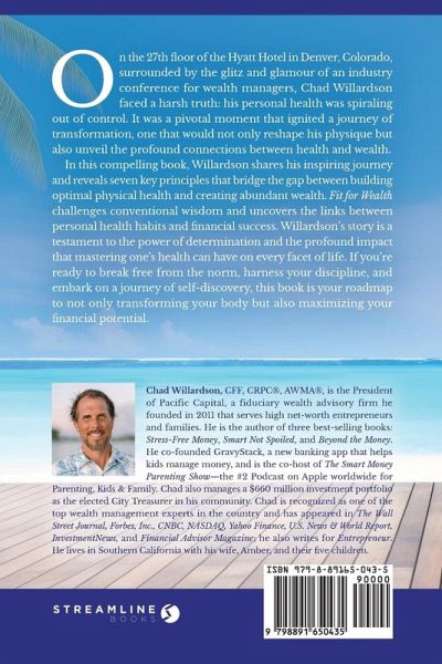 IMPROVE YOUR OVERALL WELL-BEING AND QUALITY OF LIFE BY UNDERSTANDING THE IMPORTANCE OF HEALTH FOR WEALTH Motivating, inspirational, important. Fit for Wealth is like having a personal coach cheering you on to a healthier body and bank balance. ¿¿¿On the 27th floor of the Hyatt Hotel in Denver, Colorado, surrounded by the glitz and glamour of an industry conference for wealth managers, Chad Willardson faced a harsh truth: his personal health was spiraling out of control. It was a pivotal moment that ignited a journey of transformation, one that would not only reshape his physique but also unveil the profound connections between health and wealth. 7 STRATEGIES FOR OPTIMAL HEALTH AND ABUNDANT WEALTH In this compelling self-improvement book, Willardson shares his inspiring journey and reveals seven key principles that bridge the gap between building optimal physical health and creating abundant wealth. Fit for Wealth challenges conventional wisdom and uncovers the links between personal health habits and financial success. Empowering Read... Chad has Done it Again!! Willardson's story is a testament to the power of determination and the profound impact that mastering one's health can have on every facet of life. If you're ready to break free from the norm, harness your discipline, and embark on a journey of self-discovery, this motivational personal development book is your roadmap to not only transforming your body but also maximizing your financial potential. The Health for Wealth Connection Learn how your physical health directly influences your financial well-being and vice versa, motivating you to explore new horizons of personal development. Uncover the incredible synergy that exists between these two essential aspects of life. Physical Health for Amazing Wealth Get ready to transform your body and your financial outlook, motivating you to unlock your full potential. Learn the benefits of regular exercise, both physically and financially, and how it can improve your quality of life. Learn to Balance Learn how to maintain and balance your newfound health and wealth over the long term, providing you with a blueprint for personal development and abundance. Chad Willardson offers guidance on creating a lifestyle that supports both physical well-being and financial abundance. Get Motivated to Transform Your Life Fit for Wealth is more than just a self-improvement book; it's a transformative and inspirational guide that will empower you to take control of your life, reaping the rewards of optimal health and abundant wealth. Chad makes an excellent case for why health and wealth go together. Whether you're starting on your journey to well-being and financial success or looking to enhance your current lifestyle, this self-help book is your invaluable companion. It's time to bridge the gap between health and wealth and embark on a motivational adventure of personal growth and success. Get ready to rewrite your story and claim the life you deserve.