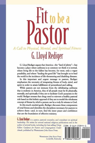 In this important and urgent message to pastors, G. Lloyd Rediger emphasizes the necessity of integrating fitness of body, mind, and spirit in order to attain fulfillment of personhood and calling. Not immune from the debilitating unfitness that is endemic in America, pastors must be fit if they are to facilitate God's purposes in the world. Rediger stresses that clergy need to reinvent a healthy pastoral role based on this holistic approach.