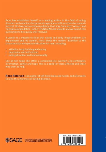 `This is a book that will be useful to carers, helping them understand the issues that affect male suffers and some of the barriers they will have to break down in order to recover. It will also reassure men affected by an eating disorder that they are not alone, their problems are understood b medical professional and that recovery is possible' - Signpost Anna has established herself as a leading author in the field of eating disorders and combines her personal experiences with an extensive research interest. Her two previous books published by Lucky Duck were winner and special commendation in the NASEN/TES book awards and we expect this publication to be equally well received. It would be a mistake to think that eating and body image problems are experienced only by women. Anna draws the readers attention to the characteristic and special difficulties for men, including: " athletics, body building and eating " depression and self-esteem " eating disorders and homosexuality. Like all her books she offers a comprehensive overview and contributes information, advice and hope. This is a book for those affected and those who want to help them.
