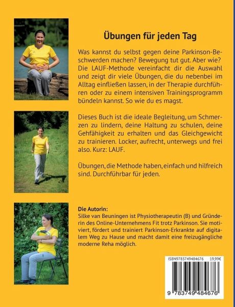 +++ Übungen für jeden Tag +++Die engagierte Parkinson-Expertin Silke van Beuningen zeigt dir in diesem praktischen Buch 52 Übungen, die dir beim Umgang mit der Parkinson-Krankheit helfen, fitter zu sein und zu bleiben. Darüber hinaus gibt sie dir über 44 Variationen und Anregungen, damit du die Übungen abwechslungsreicher oder auch anspruchsvoller gestalten kannst. Lerne die Übungen Schritt für Schritt mit zahlreichen Abbildungen kennen. Die LAUF-Methode vereinfacht dir die Auswahl der passenden Übungen, mit denen du ggf. auch deine Beschwerden lindern kannst. Die Übungen kannst du nebenbei im Alltag einfließen lassen, in der Therapie durchführen oder zu einem intensiven Trainingsprogramm bündeln. So wie du es magst.Als Bonus findest du im Buch einen Zugang zu exklusiven Videos im Internet, die einige Übungen noch anschaulicher zeigen und das Üben vereinfachen. Dieses Buch ist die ideale Begleitung, um z.B. Schmerzen zu lindern, deine Haltung zu schulen, deine Gehfähigkeit zu erhalten und das Gleichgewicht zu trainieren. Locker, aufrecht, unterwegs und frei also. Kurz: LAUF. Übungen, die Methode haben, einfach und hilfreich sind. Durchführbar für jeden.Das Buch ist in erster Instanz dazu da, dass Betroffene mehr für sich selbst tun können. Aber auch Angehörige und Fachpersonal finden hier Anregungen für den täglichen Umgang oder die Therapie.