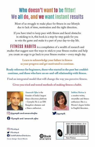 Who doesn't want to be fitter! We all do, and we want instant results. Most of us struggle to make place for fitness into our lifestyle due to lack of time, motivation and the right direction. So many of us start enthusiastically, but give up somewhere along the way. If you have tried to keep pace with fitness and faced obstacles in sticking to it, this book is a step-by-step guide for you to win the game and make it a part of your day-to-day life. FITNESS HABITS is a compilation of a wealth of research and studies that challenge the most common notions about fitness. This book suggests sure-fire ways to stick to your fitness routine and helps you to create an urge to go back to your fitness routine - every single day. ¿ Learn to acknowledge your failure in fitness as your progress and get motivated to continue. ¿ Ready reference for beginners, those who started in the past but couldn't continue, and those who have an on-and-off relationship with fitness. ¿ Find an integrated model that will change the way you perceive fitness and help you make fitness a habit. ¿ An operating manual that gives you tried and tested methods of making fitness a habit.