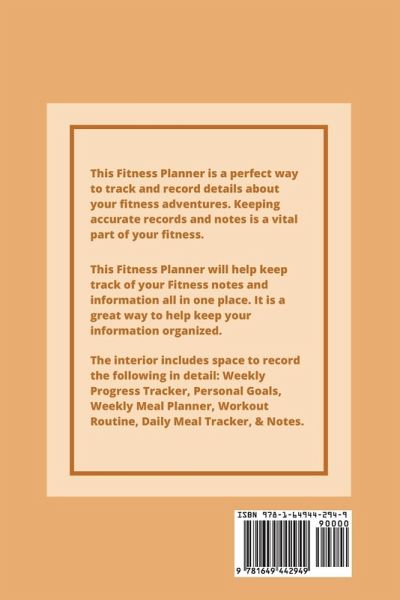 This Fitness Planner, diary is a perfect way to track your health and wellness, whether you want to lose weight or just become a healthier you. The interior pages include prompts and space to write: Weekly Progress Tracker - Each week you can record weight, and measurements for left arm, right arm, chest, waist, hips, left thigh, right thigh, Personal Goals - Write your personal goals for the week. Weekly Meal Planner - Plan your menu for the week. Workout Routine Tracker - Log the date, activity, time, sets, distance, reps, weight used, calories burned, water intake, and space to write out your workout routine. Daily Meal Tracker - Record your meals for the day including the date, what you had for breakfast, lunch, dinner, and snacks. Notes - Blank lined space for tracking any important information you want such as your training, if you're doing keto, intermittent fasting, how many calories, eating habits, blood glucose levels, went to the gym, anything you need to work on, grocery list for meal planning etc. This Fitness Planner will help keep you on track with your goals. Can also make a great gift. Simple and easy to use. Size is 6x9 inches, 122 pages, white paper, black ink, soft matte finish cover, paperback.