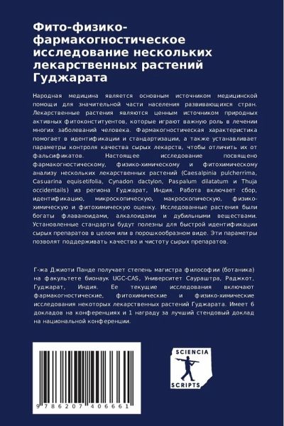 Narodnaq medicina qwlqetsq osnownym istochnikom medicinskoj pomoschi dlq znachitel'noj chasti naseleniq razwiwaüschihsq stran. Lekarstwennye rasteniq qwlqütsq cennym istochnikom prirodnyh aktiwnyh fitokonstituentow, kotorye igraüt wazhnuü rol' w lechenii mnogih zabolewanij cheloweka. Farmakognosticheskaq harakteristika pomogaet w identifikacii i standartizacii, a takzhe ustanawliwaet parametry kontrolq kachestwa syryh lekarstw, chtoby otlichit' ih ot fal'sifikatow. Nastoqschee issledowanie poswqscheno farmakognosticheskomu, fiziko-himicheskomu i fitohimicheskomu analizu neskol'kih lekarstwennyh rastenij (Caesalpinia pulcherrima, Casuarina equisetifolia, Cynadon dactylon, Paspalum dilatatum i Thuja occidentails) iz regiona Gudzharat, Indiq. Rabota wklüchaet sbor, identifikaciü, mikroskopicheskuü, makroskopicheskuü, fiziko-himicheskuü i fitohimicheskuü ocenku. Issledowannye rasteniq byli bogaty flawanoidami, alkaloidami i dubil'nymi weschestwami. Ustanowlennye standarty budut polezny dlq bystroj identifikacii syryh preparatow w celom ili w poroshkoobraznom wide. Jeti parametry pozwolqt podderzhiwat' kachestwo i chistotu syryh preparatow.