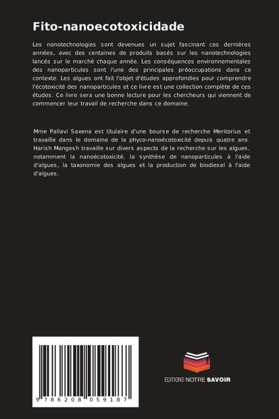 Les nanotechnologies sont devenues un sujet fascinant ces dernières années, avec des centaines de produits basés sur les nanotechnologies lancés sur le marché chaque année. Les conséquences environnementales des nanoparticules sont l'une des principales préoccupations dans ce contexte. Les algues ont fait l'objet d'études approfondies pour comprendre l'écotoxicité des nanoparticules et ce livre est une collection complète de ces études. Ce livre sera une bonne lecture pour les chercheurs qui viennent de commencer leur travail de recherche dans ce domaine.