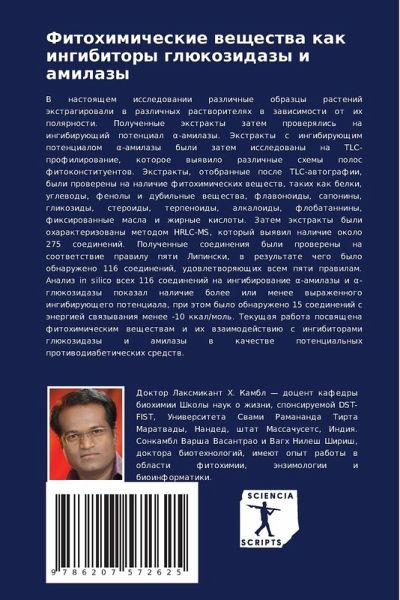 V nastoqschem issledowanii razlichnye obrazcy rastenij äxtragirowali w razlichnyh rastworitelqh w zawisimosti ot ih polqrnosti. Poluchennye äxtrakty zatem prowerqlis' na ingibiruüschij potencial ¿-amilazy. Jextrakty s ingibiruüschim potencialom ¿-amilazy byli zatem issledowany na TLC-profilirowanie, kotoroe wyqwilo razlichnye shemy polos fitokonstituentow. Jextrakty, otobrannye posle TLC-awtografii, byli prowereny na nalichie fitohimicheskih weschestw, takih kak belki, uglewody, fenoly i dubil'nye weschestwa, flawonoidy, saponiny, glikozidy, steroidy, terpenoidy, alkaloidy, flobatanniny, fixirowannye masla i zhirnye kisloty. Zatem äxtrakty byli oharakterizowany metodom HRLC-MS, kotoryj wyqwil nalichie okolo 275 soedinenij. Poluchennye soedineniq byli prowereny na sootwetstwie prawilu pqti Lipinski, w rezul'tate chego bylo obnaruzheno 116 soedinenij, udowletworqüschih wsem pqti prawilam. Analiz in silico wseh 116 soedinenij na ingibirowanie ¿-amilazy i ¿-glükozidazy pokazal nalichie bolee ili menee wyrazhennogo ingibiruüschego potenciala, pri ätom bylo obnaruzheno 15 soedinenij s änergiej swqzywaniq menee -10 kkal/mol'. Tekuschaq rabota poswqschena fitohimicheskim weschestwam i ih wzaimodejstwiü s ingibitorami glükozidazy i amilazy w kachestwe potencial'nyh protiwodiabeticheskih sredstw.