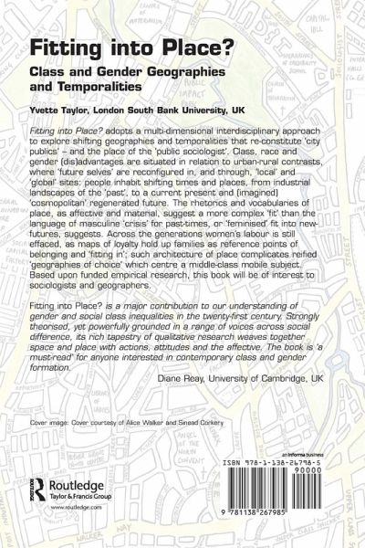 Fitting into Place adopts a multi-dimensional interdisciplinary approach to explore shifting geographies and temporalities that re-constitute 'city publics' - and the place of the 'public sociologist'. Class, race and gender (dis)advantages are situated in relation to urban-rural contrasts, where 'future selves' are reconfigured in and through 'local' and 'global' sites: people inhabit shifting times and places, from industrial landscapes of the 'past', to a current present and (imagined) 'cosmopolitan' 'regenerated' future. The rhetorics and vocabularies of place, as affective and material, suggest a more complex 'fit' than the language of masculine 'crisis' for past-times, or 'feminised' fit into new-futures, suggests. Across the generations, women's labour is still effaced as maps of loyalty hold up families as reference points of belonging and 'fitting in'; such architecture of place complicates reified 'geographies of choice' which centre a middle-class mobile subject. Based upon funded empirical research, this book will be of interest to sociologists and geographers.