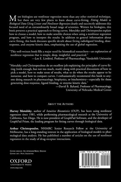 Most biologists use nonlinear regression more than any other statistical technique, but there are very few places to learn about curve-fitting. This book, by the author of the very successful Intuitive Biostatistics, addresses this relatively focused need of an extraordinarily broad range of scientists. The book will likely be purchased by a high proportion of biological laboratories, for frequent reference. The author gets about 3000 visits per month to his curvefit website, with the average visitor viewing 9 pages.