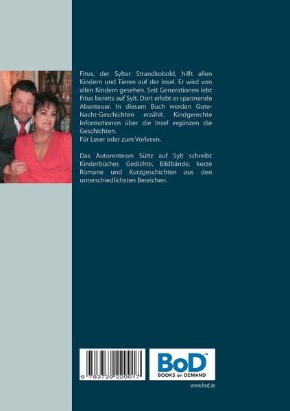 Fitus, der Sylter Strandkobold, hilft allen Kindern und Tieren auf der Insel. Er wird von allen Kindern gesehen. Seit Generationen lebt Fitus bereits auf Sylt. Er erlebt spannende Abenteuer. In diesem Buch werden Gute-Nacht-Geschichten erzählt. Kindgerechte Informationen über die Insel ergänzen die Geschichten.Für Leser oder zum Vorlesen.