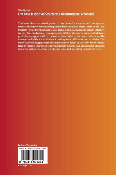 This book discusses a development in institutional economics and management science, which provides engineering methods for institution design. Based on the "Sun Diagram" created by the author, it uses graphics and calculations to explain that there are only five fundamental management institution structures, each of which has a particular management effect. It also demonstrates that production activities should be managed with different institutions according to the differences in externalities. This significant book suggests ways of using institution design to tackle the key challenges faced by societies today, such as environmental pollution, over-consumption of natural resources, carbon emissions, world peace issues and stagnating productivity levels.