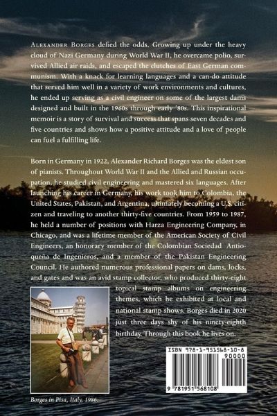 Alexander Borges defied the odds. Growing up under the heavy cloud of Nazi Germany during World War II, he overcame polio, survived Allied air raids, and escaped the clutches of East German communism. With a knack for learning languages and a can-do attitude that served him well in a variety of work environments and cultures, he ended up serving as a civil engineer on some of the largest dams designed and built in the 1960s through early '80s. This inspirational memoir is a story of survival and success that spans seven decades and five countries and shows how a positive attitude and a love of people can fuel a fulfilling life.