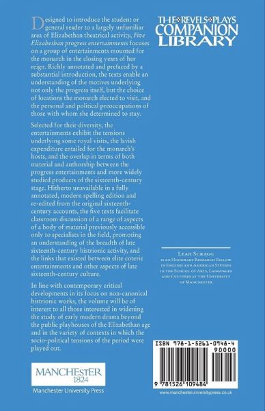 A fully annotated, modern-spelling edition of entertainments performed for the monarch during her summer progress, the collection affords an insight into a neglected area of Elizabethan cultural activity. -- .