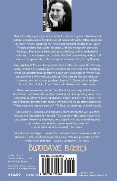 Maura Dooleyâ s poetry is renowned for embracing both lyricism and political consciousness, for its fusion of head and heart. Five Fifty-Five is a book of quizzical poems concerned with time and mortality which ask fundamental questions about our lives. It is her sixth collection, her first since The Silvering (2016).