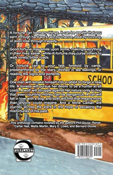 An Anthology of Fates A fortune can be many things. It can be wealth that you earn through hard work, win by chance, steal by cunning, or even lose through tragedy. Good fortune may smile upon some, making everything in their lives easier, while ill fortune may curse others to walk lonely, bitter roads. Or fortune can be your fate, foretold by cards, predetermined by the stars, divined in tea leavings, or reading the signs and portents. One man will remake himself into a rabbit to forge a new life. A lioness will pursue her desire to be a hunter at all costs. A wolf will struggle against her nature, only to find that even counting money can be dangerous. A cat will fall in love with a dog, and both will find that means more than anyone could imagine. And a feline will journey across the stars in the hope of escape the misfortunes of his past. This anthology contains novellas by the authors Phil Geuze, Renee Carter Hall, Watts Martin, Mary E. Lowd, and Bernad Doove.