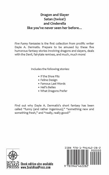Five Funny Fantasies is the first collection from prolific writer Dayle A. Dermatis. Prepare to be amused by these five humorous fantasy stories involving dragons and slayers, deals with the Devil, fairytale remixes, and much, much more! Includes the following stories: ¿ If the Shoe Fits ¿ Feline Design ¿ Famous Last Words ¿ Hell's Belles ¿ What Dragons Prefer Find out why Dayle A. Dermatis's short fantasy has been called "funny (and rather ingenious)," "something new and something fresh," and "really, really good!"