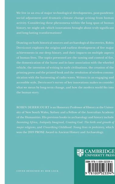 We live in an era of major technological developments, post-pandemic social adjustment, and dramatic climate change arising from human activity. Considering these phenomena within the long span of human history, we might ask: which innovations brought about truly significant and long-lasting transformations? Drawing on both historical sources and archaeological discoveries, Robin Derricourt explores the origins and earliest development of five major achievements in our deep history, and their impacts on multiple aspects of human lives. The topics presented are the taming and control of fire, the domestication of the horse,and its later association with the wheeled vehicle, the invention of writing in early civilisations, the creation of the printing press and the printed book, and the revolution of wireless communication with the harnessing of radio waves. Written in an engaging and accessible style, Derricourt's survey of key innovations makes us consider what we mean by long-term change, and how the modern world fits into the human story.