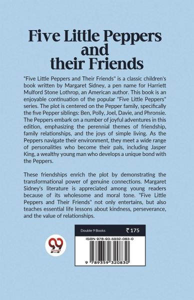 "Five Little Peppers and Their Friends" is a classic children's book written by Margaret Sidney, a pen name for Harriett Mulford Stone Lothrop, an American author. This book is an enjoyable continuation of the popular "Five Little Peppers" series. The plot is centered on the Pepper family, specifically the five Pepper siblings: Ben, Polly, Joel, Davie, and Phronsie. The Peppers embark on a number of joyful adventures in this edition, emphasizing the perennial themes of friendship, family relationships, and the joys of simple living. As the Peppers navigate their environment, they meet a wide range of personalities who become their pals, including Jasper King, a wealthy young man who develops a unique bond with the Peppers. These friendships enrich the plot by demonstrating the transformational power of genuine connections. Margaret Sidney's literature is appreciated among young readers because of its wholesome and moral tone. "Five Little Peppers and Their Friends" not only entertains, but also teaches essential life lessons about kindness, perseverance, and the value of relationships.