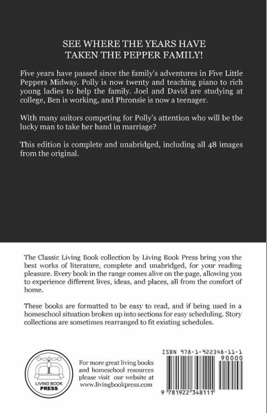 Five years have passed since the family's adventures in Five Little Peppers Midway. Polly is now twenty and teaching piano to rich young ladies to help the family. Joel and David are studying at college, Ben is working, and Phronsie is now a teenager. With many suitors competing for Polly's attention who will be the lucky man to take her hand in marriage? This edition is complete and unabridged, including all 48 images from the original.