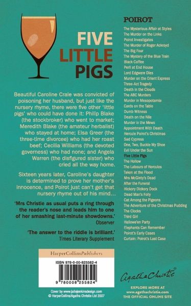 "Agatha Christie never fails us, and her Five Little Pigs presents a very pretty problem for the ingenious reader." Manchester Guardian