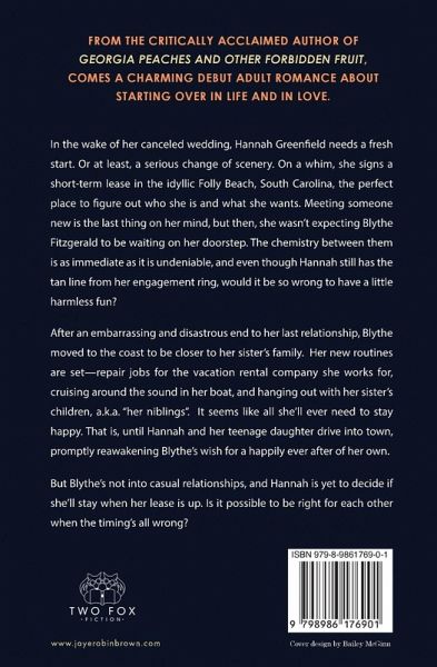 From the critically acclaimed author of The Meaning of Birds & Georgia Peaches and Other Forbidden Fruit, comes a charming sapphic romance. For readers who love heartfelt stories. Sweet with a dab of heat.