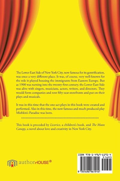 The Lower East Side of New York City, now famous for its gentrification, was once a very different place. It was, of course, very well-known for the role it played housing the immigrants from Eastern Europe. But as 1900 was turning into the twenty-first century, the Lower East Side was alive with singers, musicians, actors, writers, and directors. They would form companies and rent fifty-seat storefronts and put on their plays and musicals. It was in this time that the one-act plays in this book were created and performed. Also in this time, the now famous and much produced play Mishkin's Paradise was born.