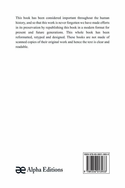 This book has been considered important throughout the human history, and so that this work is never forgotten we have made efforts in its preservation by republishing this book in a modern format for present and future generations. This whole book has been reformatted, retyped and designed. These books are not made of scanned copies and hence the text is clear and readable.
