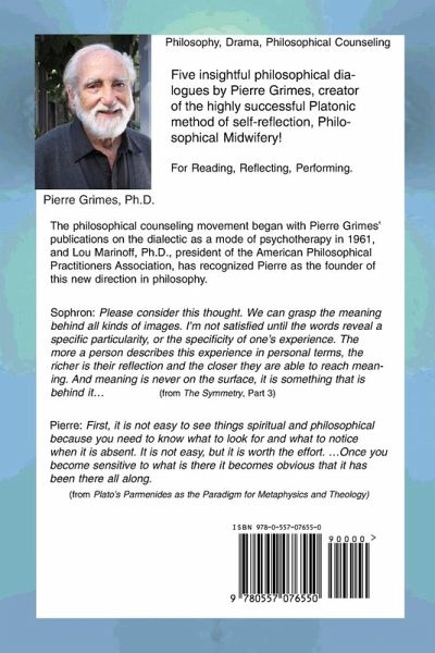 Five Dialogues, performable as plays, each on a significant element in self knowledge through the means of philosophical midwifery, Buddhist dialectic, and Platonic dialectic. One dialogue, The Symmetry, includes a actual-life example of personal growth featured as the central part of a performed play. Another of the dialogues, Being, the One, was produced for and broadcast on Public Television. The reader is guided through key insights in both self-knowledge and of the universe through a Platonic model of discourse and discovery.