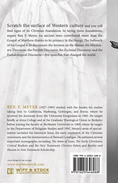 Scratch the surface of Western culture and you will find signs of its Christian foundation. In laying these foundations, argues Ben F. Meyer, no ancient texts contributed more than the Gospel of Matthew, thanks to its primacy in the liturgy. The hallmark of his Gospel is its discourses: the Sermon on the Mount, the Missionary Discourse, the Parable Discourse, the Ecclesial Discourse, and the Eschatological Discourse--five speeches that changed the world.