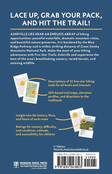 "Peaceful waterfalls, dramatic mountain vistas, bountiful nature preserves, and, of course, the Blue Ridge Parkway and Great Smoky Mountains National Park-there's no better place to hit the trails than the Asheville area. This diverse geographical region offers a variety of easy, moderate, and strenuous hikes. Travel through history at Mount Pisgah via Buck Spring Lodge. Take in the scenery at Big Firescald Knob. Bring the kids to Bearwallow Mountain. Explore 35 of the region's best, five-star trails with this easy-to-carry and easy-to-use guidebook. In the updated edition, acclaimed author and record-setting hiker/backpacker Jennifer Pharr Davis presents everything you need to know about spectacular outings that lead to mountain panoramas, majestic waterfalls, remote wilderness, amazing wildlife, and more"--